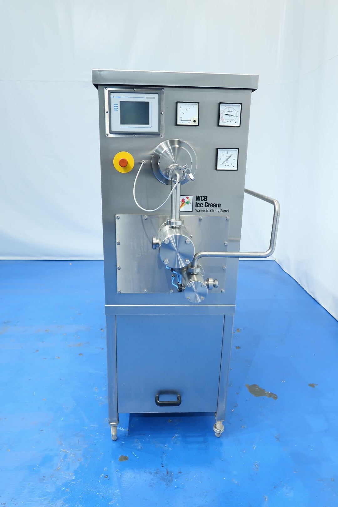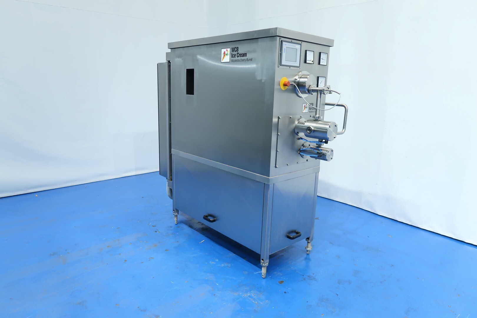 Continuous Ice Freezer with 1 cylinder.  With built-in refrigeration system by water-cooled Freon compressor (make Bitzer, freon type: R 404A).  Working Principle: The ice cream mix is metered into the freezing cylinder by a positive pump, and a constant flow of air is fed in together with the mix. During the passage through the cylinder the air is whipped into the mix by the action of a rotating mutator.