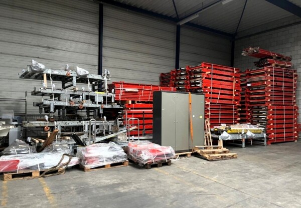 • Pallet storage system, steel rollers, roller width: 850 mm, total dimensions: 18800 mm x 3600 mm x 3220 mm
