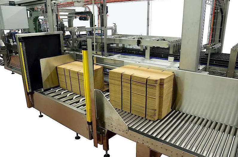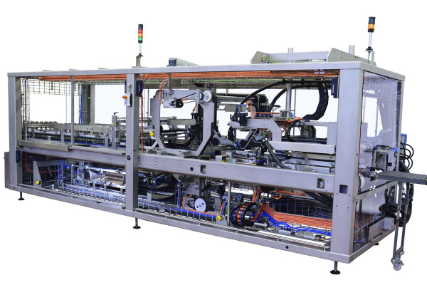 The Meurer CM/HTW high-speed tray and wrap-around packer is designed to pack products into low trays, product-high trays, or wrap-around cases. The blanks are formed around the product in a continuous flow and glued using hotmelt glue. The system is equipped with servo drives and a multi-axis control system for precise and efficient operation.