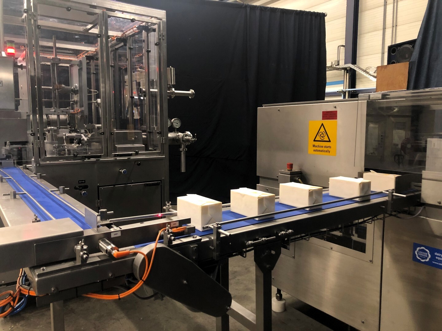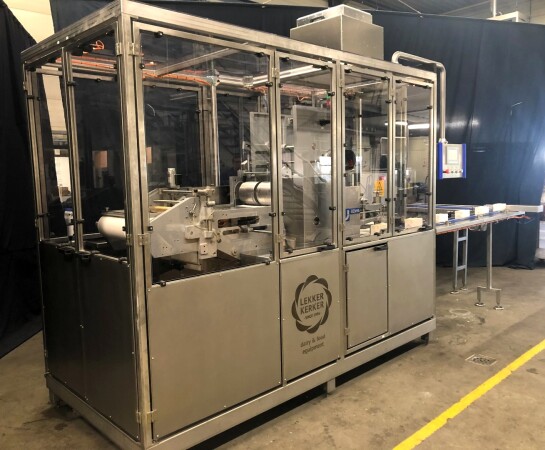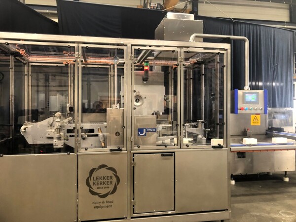 Esta línea de envasado de mantequilla Benhil 8345 Multipack fue reconstruida profesionalmente en 2020 por Lekkerkerker Dairy & Food Equipment y es adecuada para formatos de mantequilla de 250 g, 500 g y 1.000 g. La máquina ofrece una capacidad alta y fiable, hasta 80 piezas por minuto para los envases de 250 g y 500 g, y 60 piezas por minuto para los envases de 1.000 g. Utiliza empaquetado de fondo plegado con papel de aluminio en rollos y cuenta con alimentación directa para mantequilla de la composición correcta. Una solución robusta y comprobada para operaciones de envasado de mantequilla eficientes.
