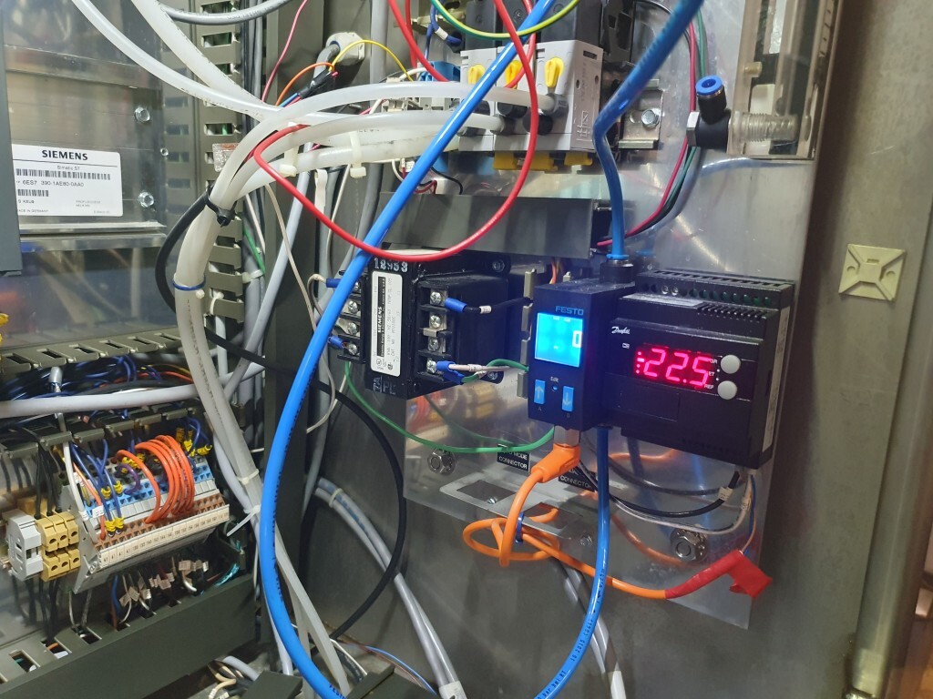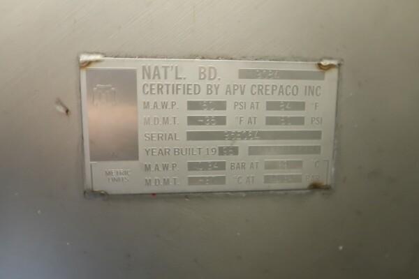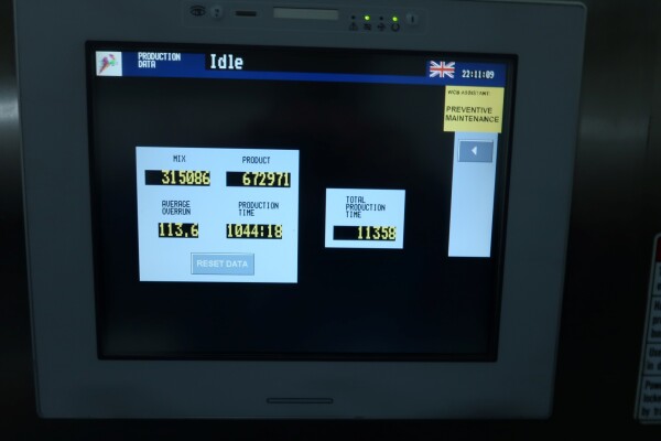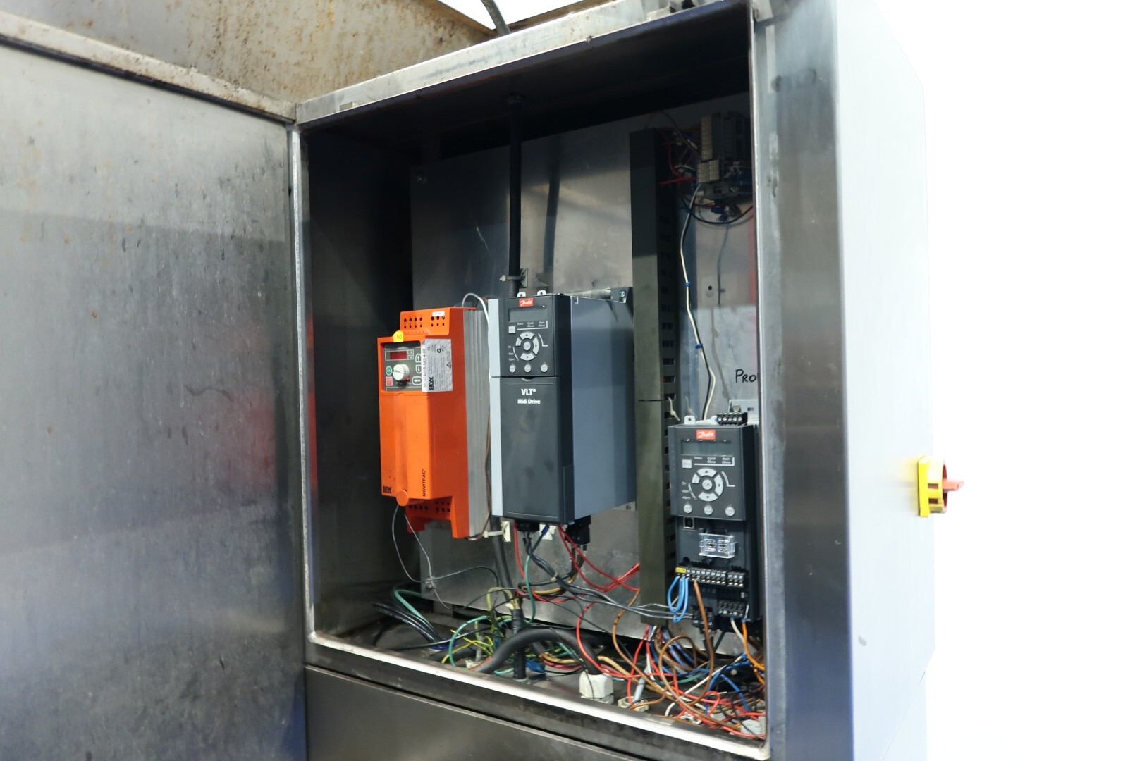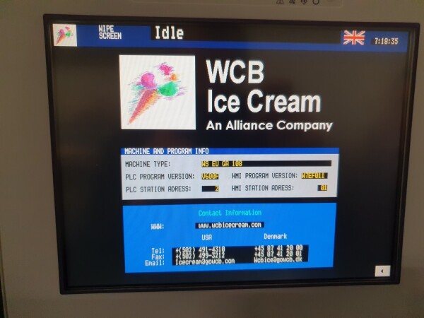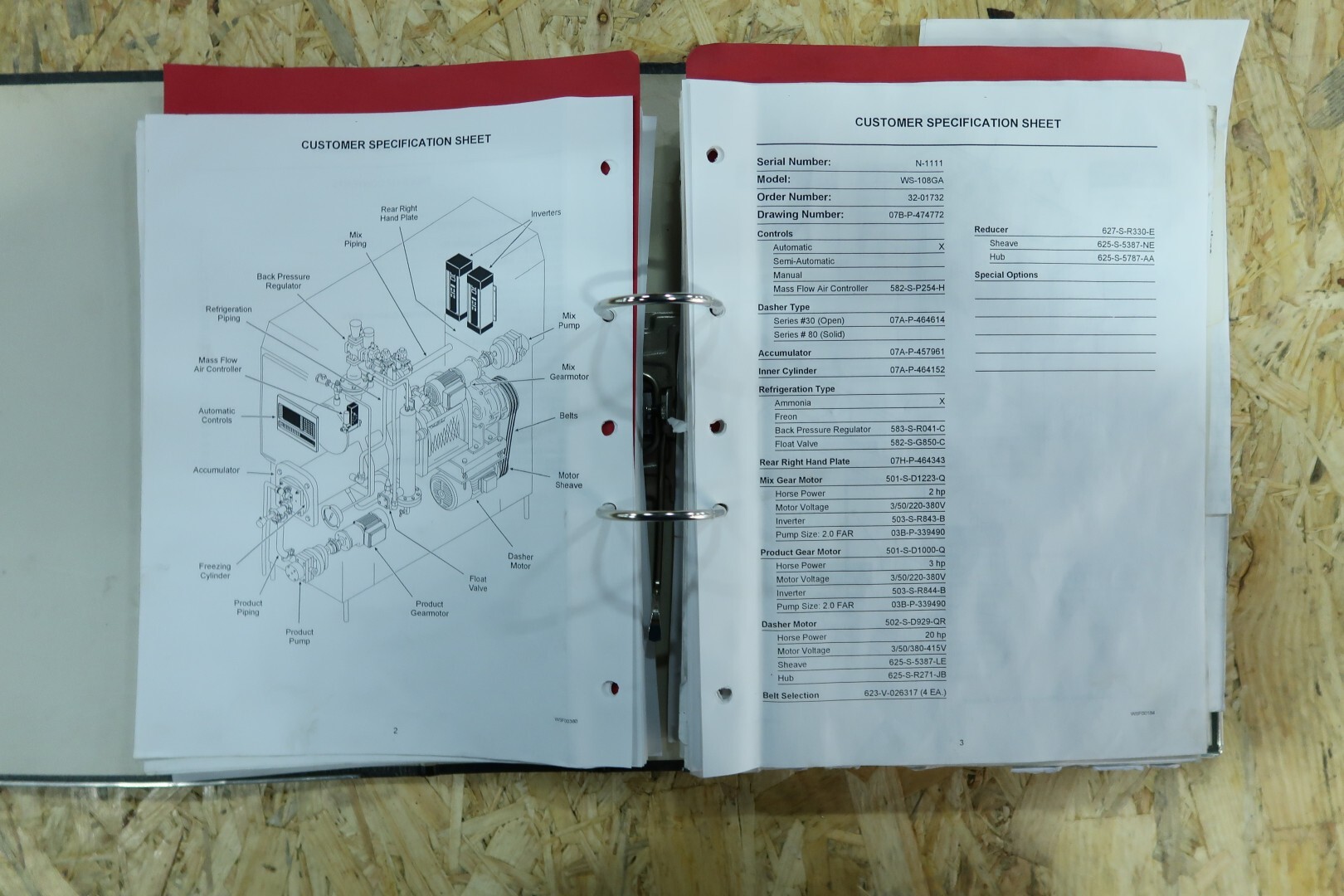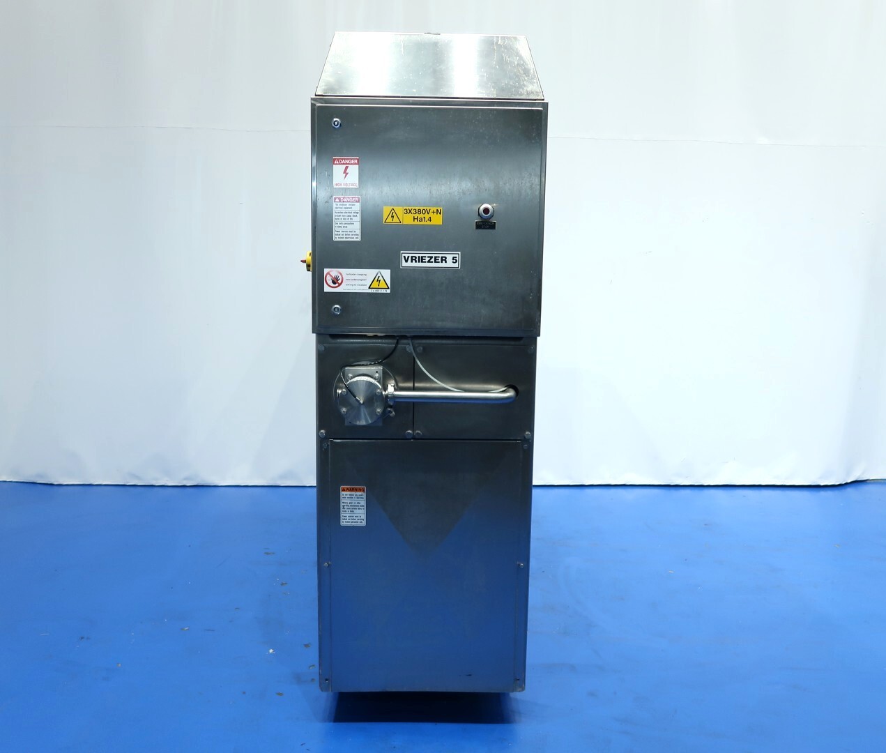 Congélateur continu pour la production de glace, avec un cylindre, des racloirs neufs et un système de réfrigération à ammoniaque (NH₃). Équipé de pompes et d’un automate Siemens Simatic S7 avec écran tactile. Entretien récent sur le dash, le cylindre et les pompes (rapport disponible). Raccordements : pompe produit 2" Tri-Clamp, pompe mélange 1,5" Tri-Clamp. Capacité nominale basée sur un mix contenant 10,5% de matière grasse, 37,5% d’extrait sec et une composition standard de sucre/stabilisant. Température d’entrée 4,4°C, sortie -5,5°C. Capacité de refroidissement à -33°C.