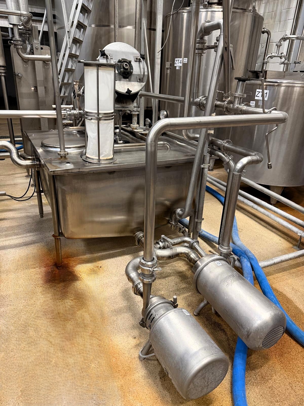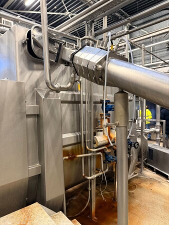 Download pdfSilo à beurre Egli d’une capacité de 2.000 kg, comprenant 2 pompes à beurre Waukesha type 130U1 (5,5 kW) et une pompe de retour CIP. Faisant partie d’une ligne complète de production de beurre : la crème est pompée depuis les réservoirs tampons vers la baratte continue (CBM), qui transforme environ 4 000 litres de crème par heure en 2 000 kg de beurre.