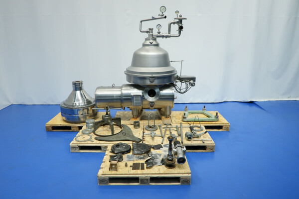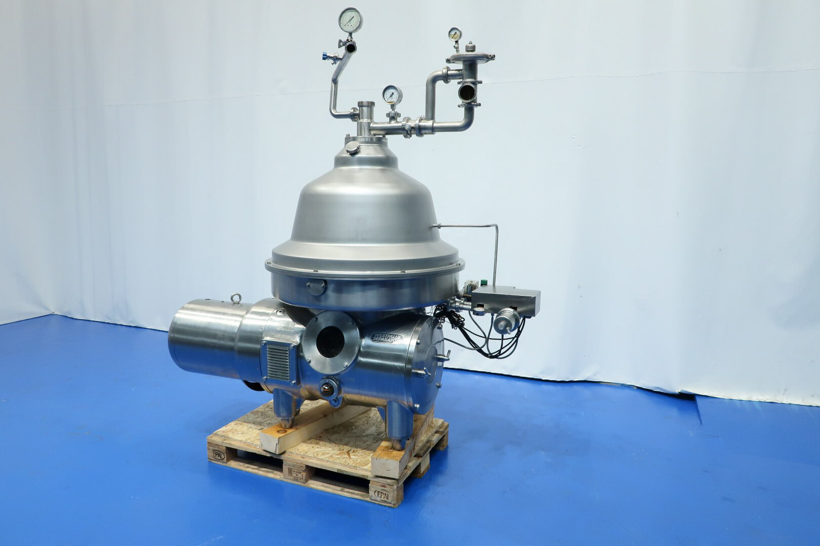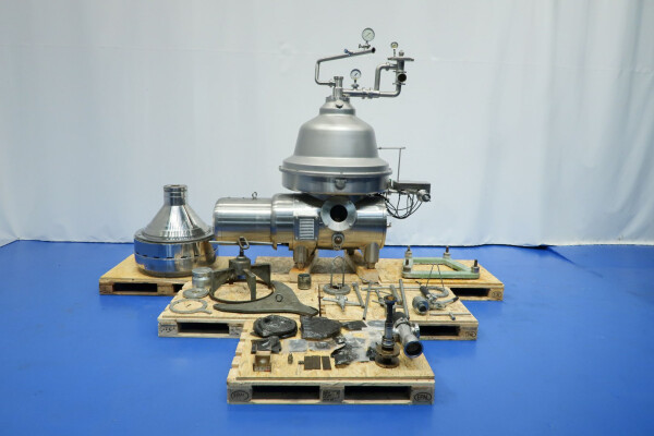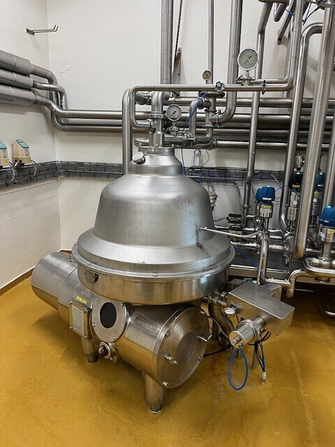 L'écrémeuse à lait Westfalia MSD 250-01-076 est conçue pour une efficacité et une fiabilité optimales dans l'industrie laitière. Séparateur à disques haute performance, elle se distingue par sa fonction d'auto-vidange. La cuve de séparation permet une séparation efficace des liquides et des solides, avec une vidange du liquide par un double système de préhension, garantissant un vidage fiable et continu pendant le fonctionnement. Avec une vitesse de rotation maximale de la cuve de 4 700 tr/min et un débit de 30 000 litres par heure, cette écrémeuse est conçue pour répondre aux exigences des opérations de transformation laitière à grande échelle. Écrémeuse autonettoyante. Contenu : cuve, capot moteur, châssis, vanne de contre-pression pneumatique pour le lait, vanne d'échantillonnage de la crème sortante et OWM (un indicateur de débit pour la crème sortante peut être installé). Moteur : 37 kW – 72 A – 1 475 tr/min – 50 Hz. Sont également inclus : un double CPM (Tetra modèle D60) avec embrayage hydraulique, un jeu d'outils et des pièces de rechange. La documentation comprend le manuel d'instructions et la liste des pièces.