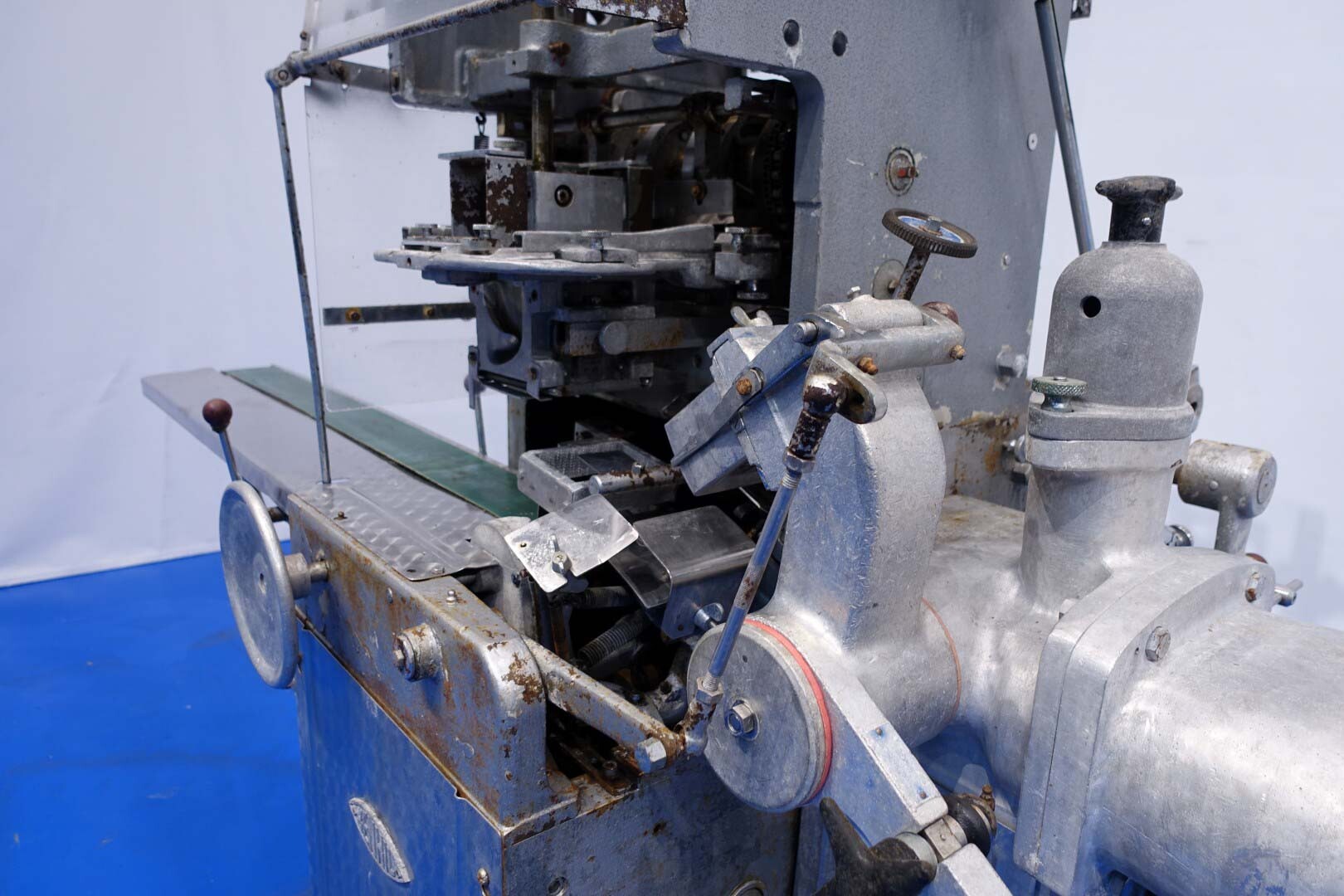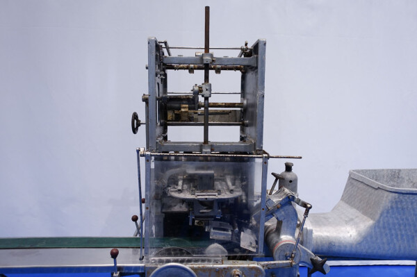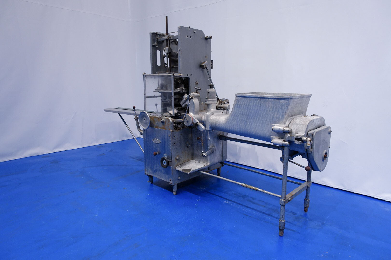 Elle est dotée d'un convoyeur de sortie d'environ 130 cm. Les formats disponibles sont conçus pour des emballages de 250 grammes, de dimensions rectangulaires standard de 100 x 75 x 35 mm. Le panneau de commande n'est pas inclus.