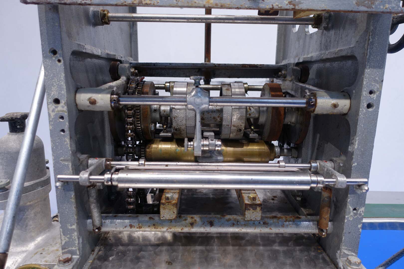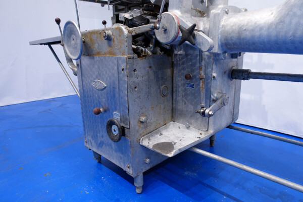 Il s'agit d'une machine de remplissage et d'emballage entièrement automatique conçue pour le beurre, compatible avec l'utilisation de papier aluminium ou sulfurisé. L'alimentation du produit se fait par une goulotte en aluminium et des vis sans fin. La machine est équipée d'un système de centrage mécanique par empreinte digitale (sans cellule photoélectrique) et ne comporte pas de codeur de date.