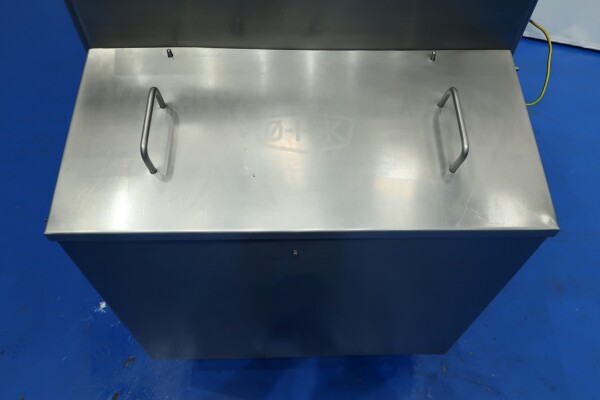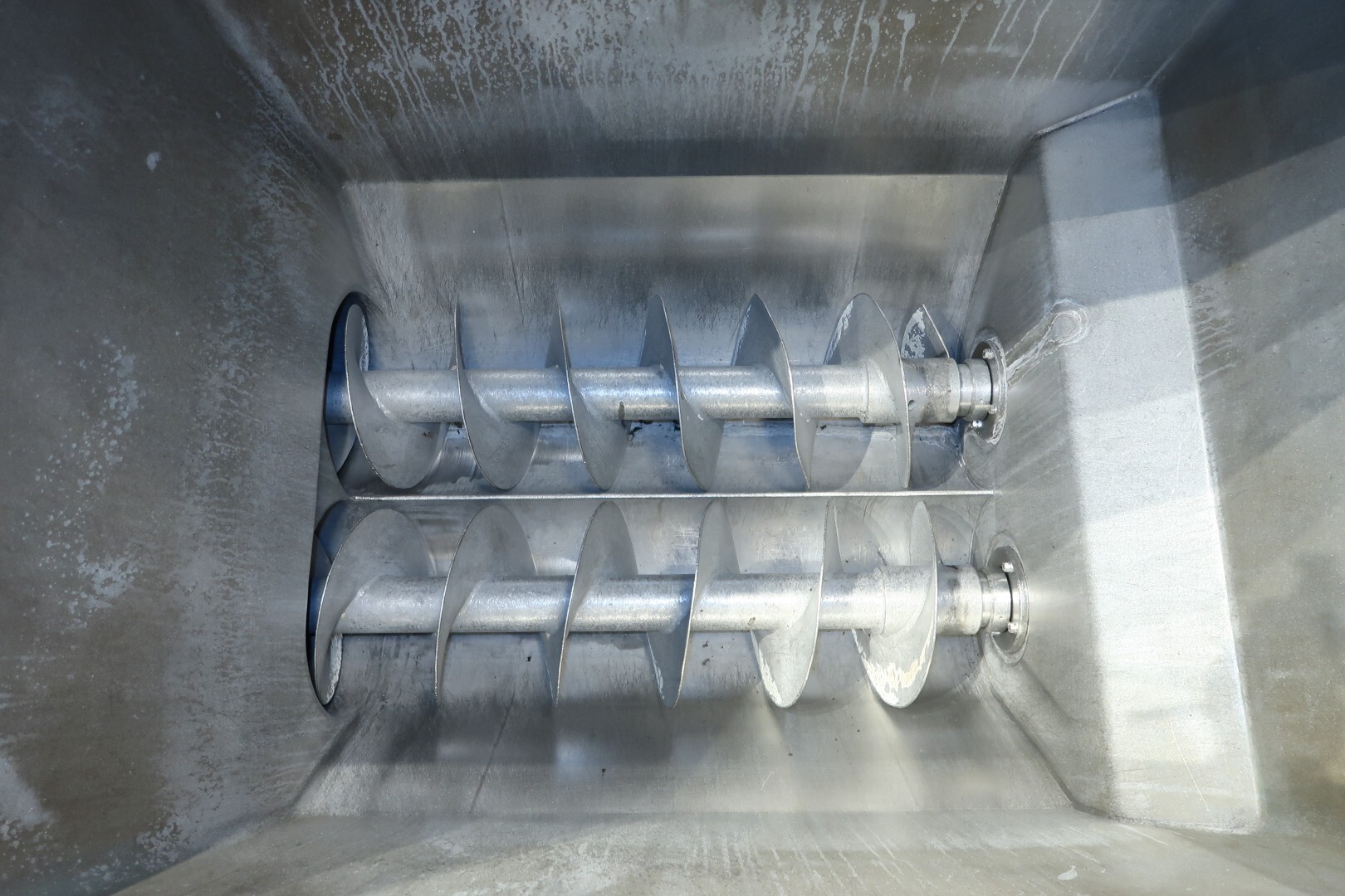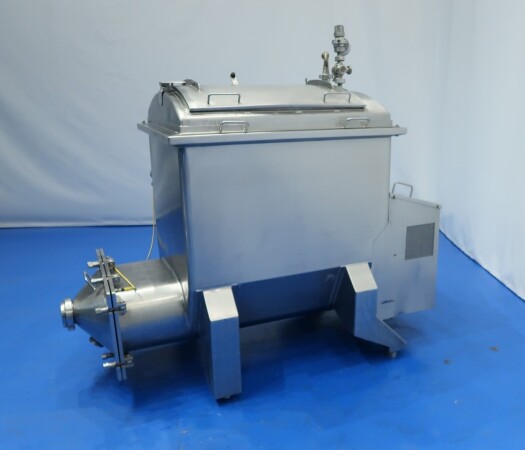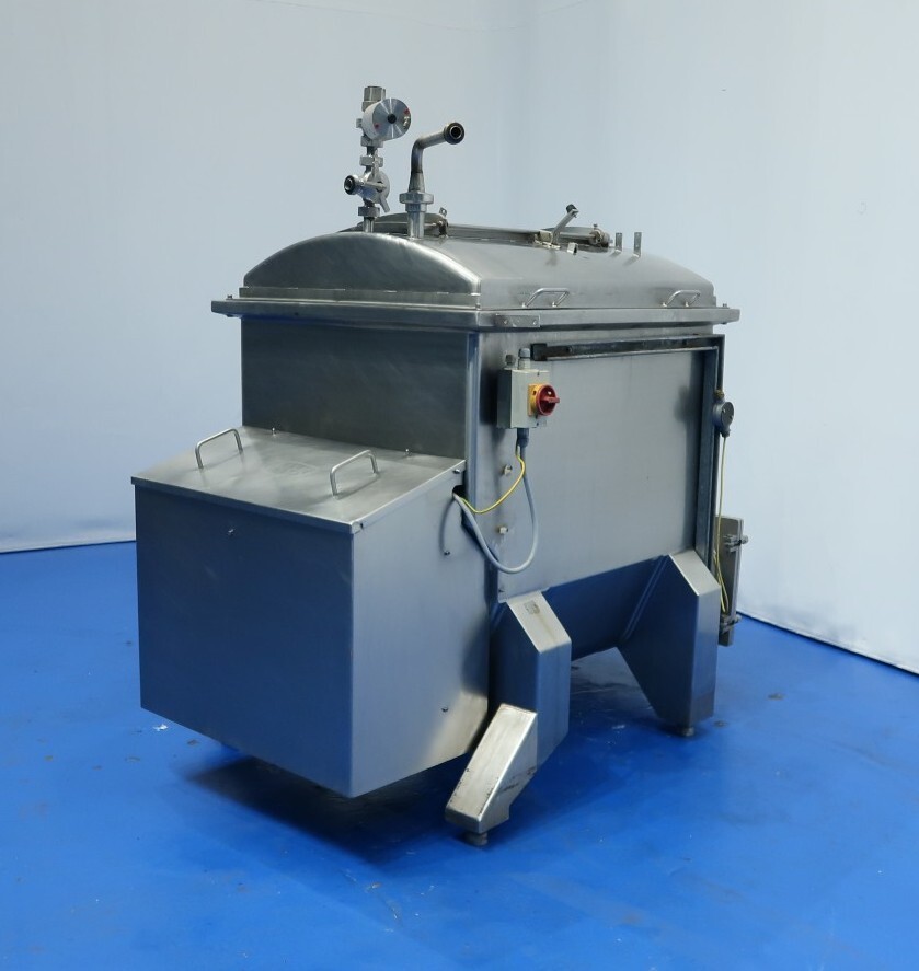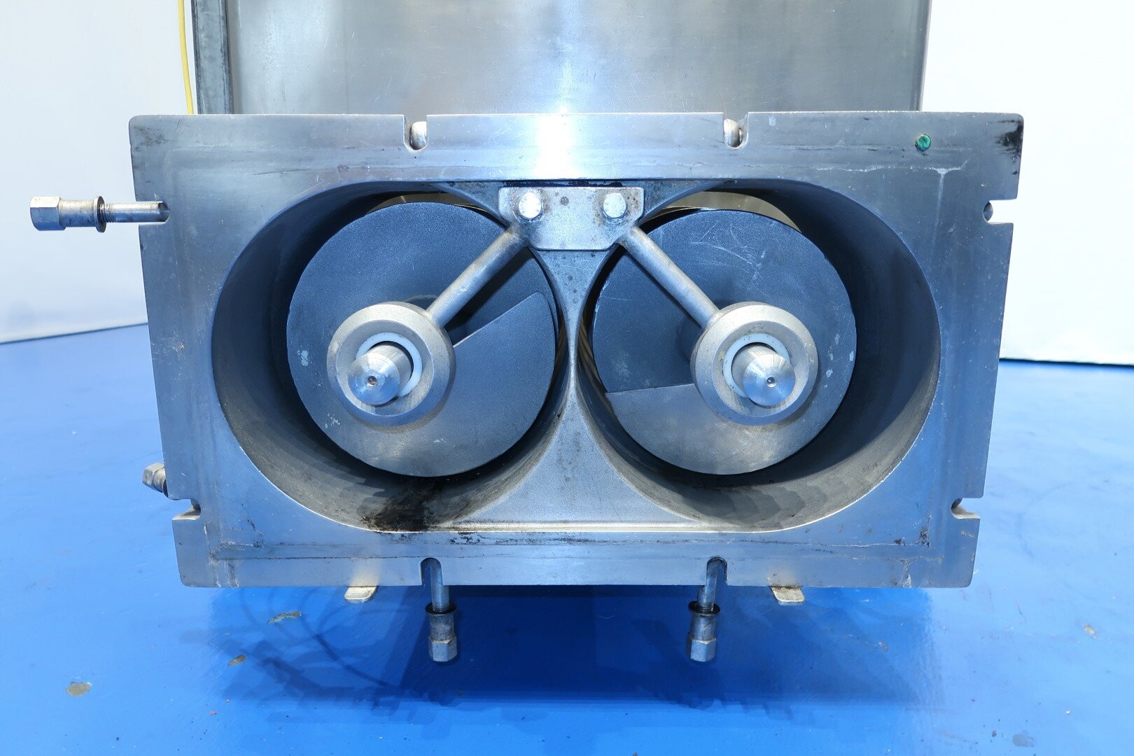 Ce silo fermé pour beurre est équipé de deux vis entraînées par un seul moteur de 2,2 kW et d’un couvercle supérieur (80 × 44 cm) muni d’un capteur de sécurité. L’intérieur bénéficie d’une finition antiadhésive spéciale pour éviter que le beurre n’adhère. L’unité est entièrement nettoyable par CIP et possède une sortie DN100 pour le beurre ainsi qu’un raccord CIP de 2,5". L’appareil fonctionne manuellement via un interrupteur marche/arrêt avec capteurs de sécurité intégrés. Le silo mesure 186 × 100 × 168 cm et pèse 480 kg.