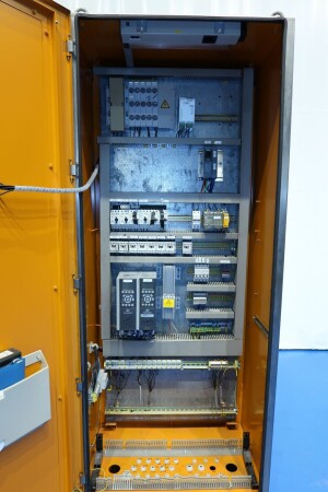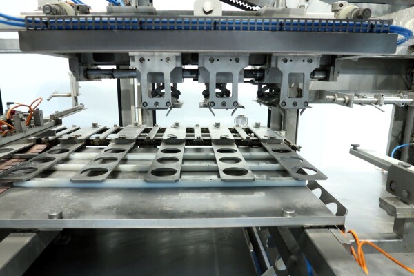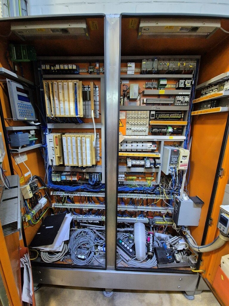 Ampack Ammann ASGP 4 ASS 1: De volledig automatische tray-packer is ontworpen voor ronde cups met een diameter van 116 mm, verpakt in een 3×2 configuratie van 6 cups per tray. De huidige tray-afmetingen zijn ca. 250 × 360 mm. De machine wordt aangedreven door een 3 kW motor (50 Hz) en vereist perslucht van 14 Nm³/h – 7 bar. De besturing geschiedt via Siemens Simatic S7-1500 en kan worden gecombineerd met de originele Ampack KF1/3 vulmachine (ook beschikbaar als STN15964). Deze robuuste en efficiënte packer biedt betrouwbaar en kwalitatief hoogstaand tray-packing voor diverse productielijnen.