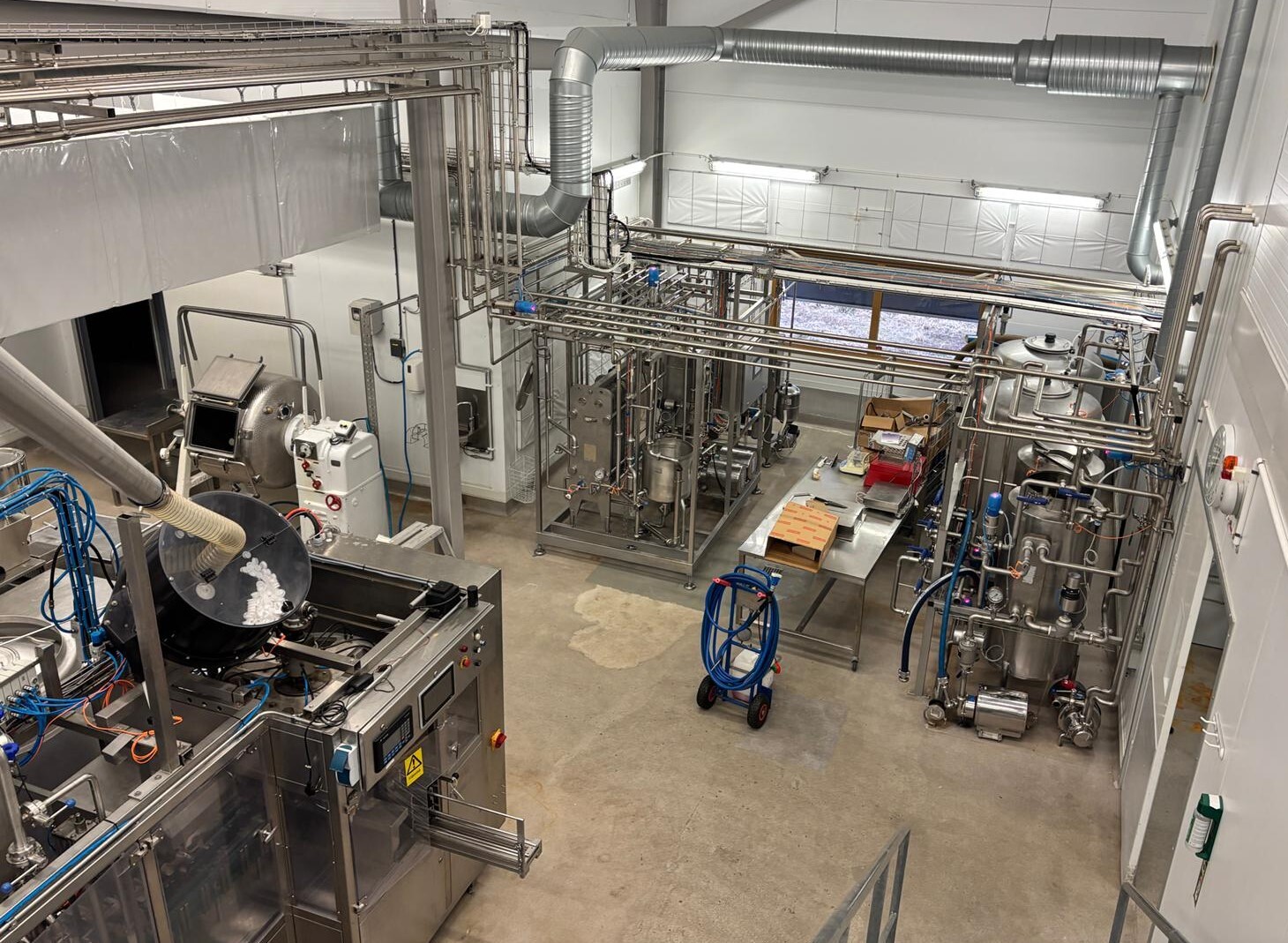 Processed products included: Soft cheeses (e.g. Brie / Camembert) Semi‑hard pressed cheeses. Note: The line for semi‑hard cheese is not complete. The curd preparation vat for semi‑hard cheese production is excluded. Curd mould filling and pre‑pressing vessel