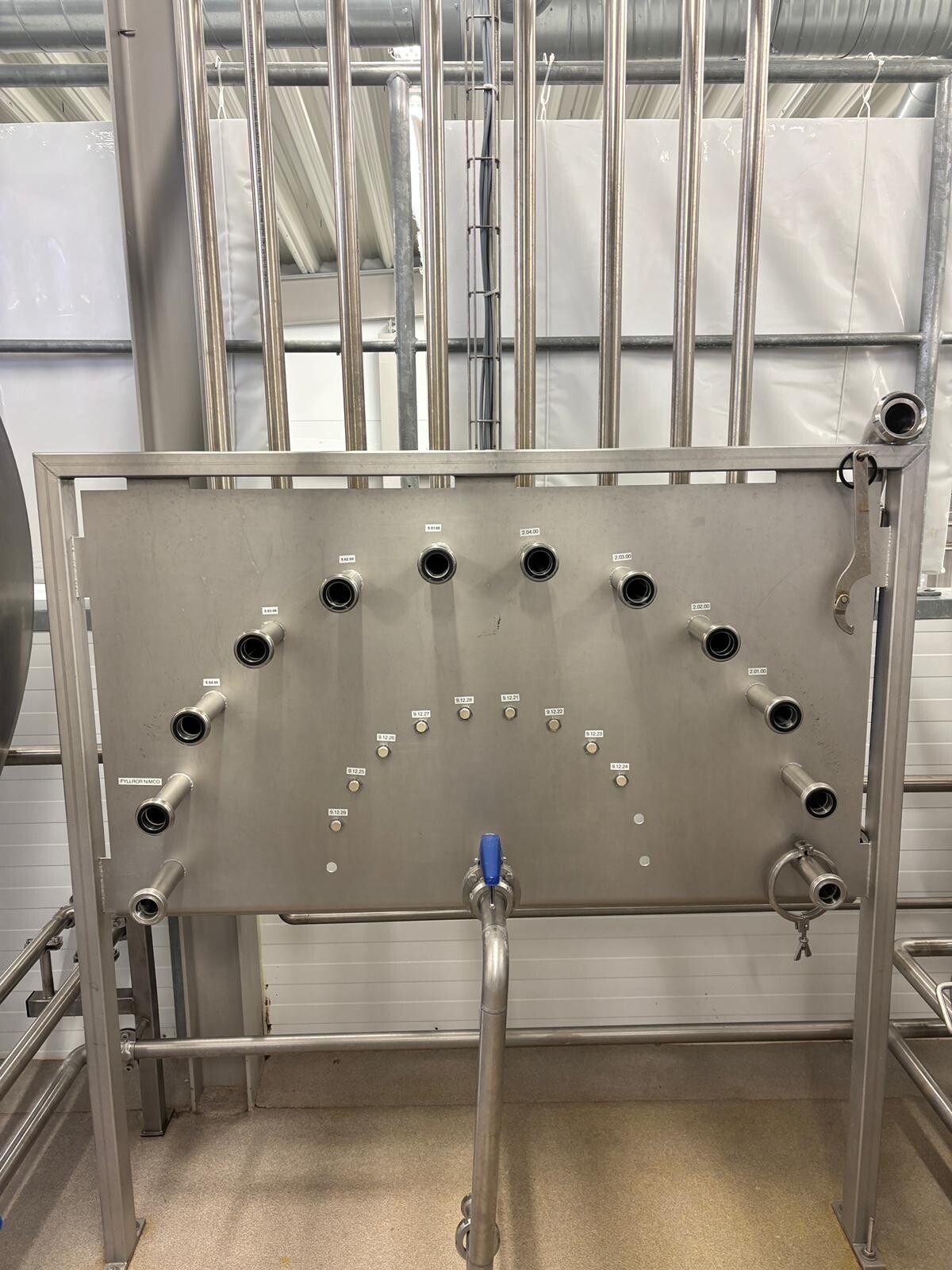 Central CIP swing-bend panel installed for routing CIP detergent to individual tanks. Including all interconnection piping and valves.