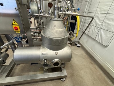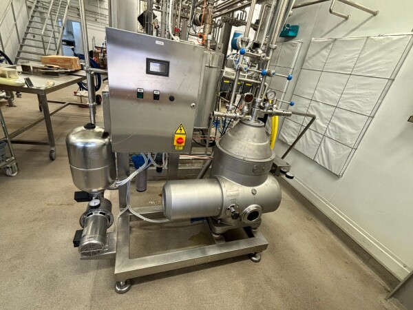Seital SE-12 ASMX 2007 Milk Skimmer Separator Self cleaning. Capacity: 1,350 litres/hour (in line with the pasteurizer) The separator is directly connected to the pasteurizer and is equipped with: cream remix valve for controlled return of cream into the skim milk. Complete with control panel and set of tools.