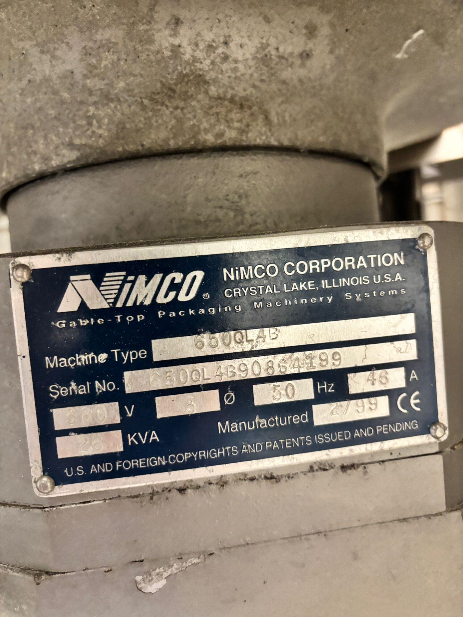 Nimco 650QLAB 1999 Gable top carton filling,capping, and closing machine. Capacity:vMaximum: up to 3,000 cartons/hour. Current setup: 1,500 cartons/hour.                                                                    Format: 0.5 – 1.0 litre A‑style shaped gable‑top cartons (Tetra type)