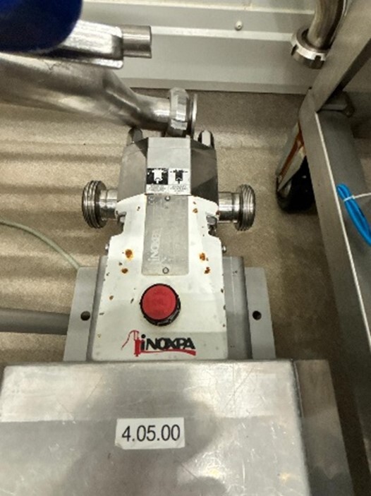 Reception pump for unloading trucks or containers. Inoxpa RF 20/50 (I193962B), year 2014, impeller Ø118, equipped with F&P flowmeter.