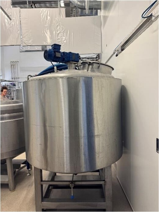 Yoghurt Tanks:Tank 1 Volume: 1,200 litres with agitator. Tank 2 & Tank 3 – Transport Containers with manual strirrer used for yoghurt fermentation and transport. Suitable for hygienic handling of fermented yoghurt