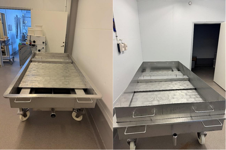 Mould washing bin suitable for cleaning cheese moulds.