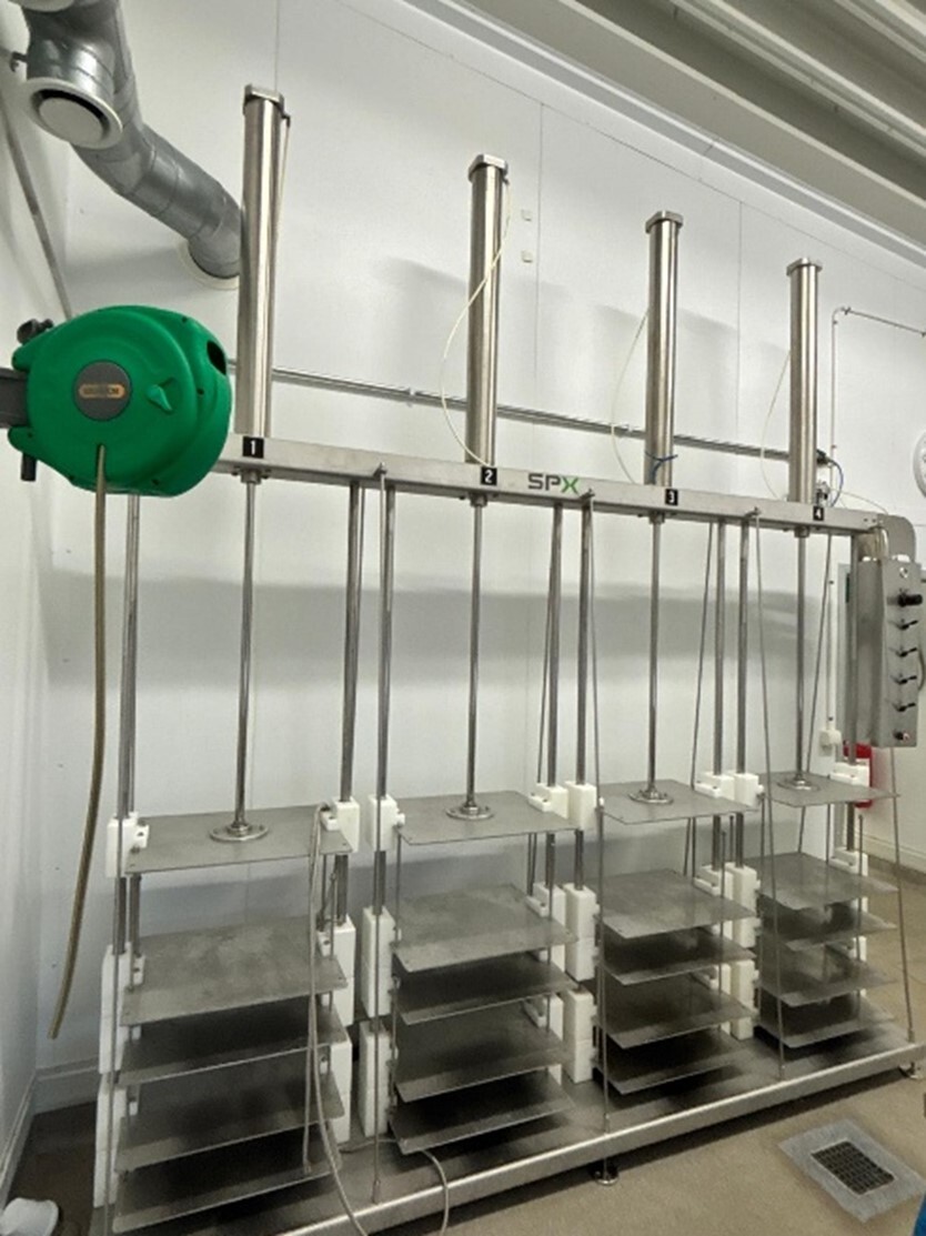 Cheese press 1: Type Staple press with 4 cylinders, suitable for semi‑hard cheeses
