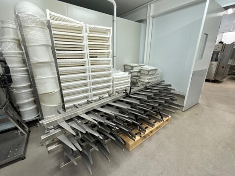 Cheese Storage & Semi‑Hard Cheese Equipment: white storage racks for small cheeses.Dimensions: 77 × 85 × 16 cm. Quantity: 87 units