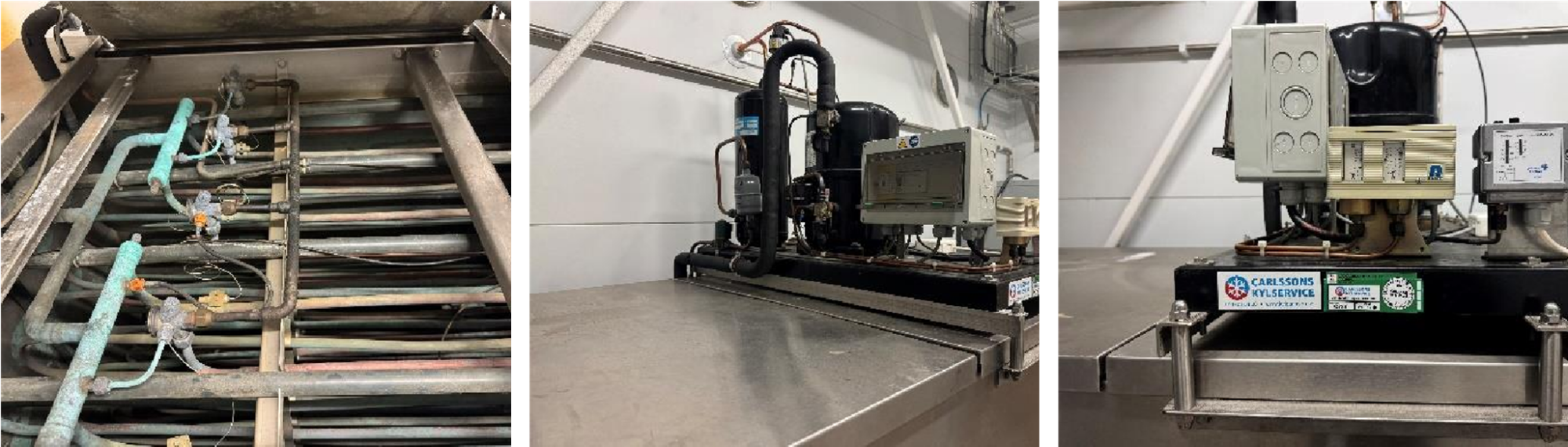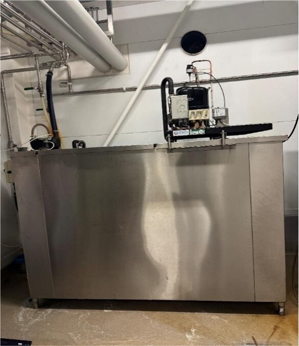 For rapid milk cooling.The unit consists of: insulated buffer tank, freon compressor mounted on top of the tank and ice water circulation pump. Inside the tank, ice is formed around a spiral cooling coil containing the cooling medium. This system produces ice water at approximately 0 °C, used for efficient cooling of milk and dairy products.