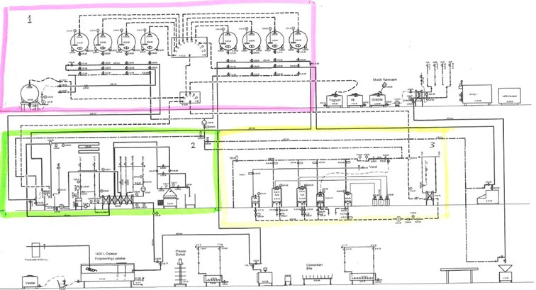 4 Raw milk storage and 4 pasteurized milk storage tanks