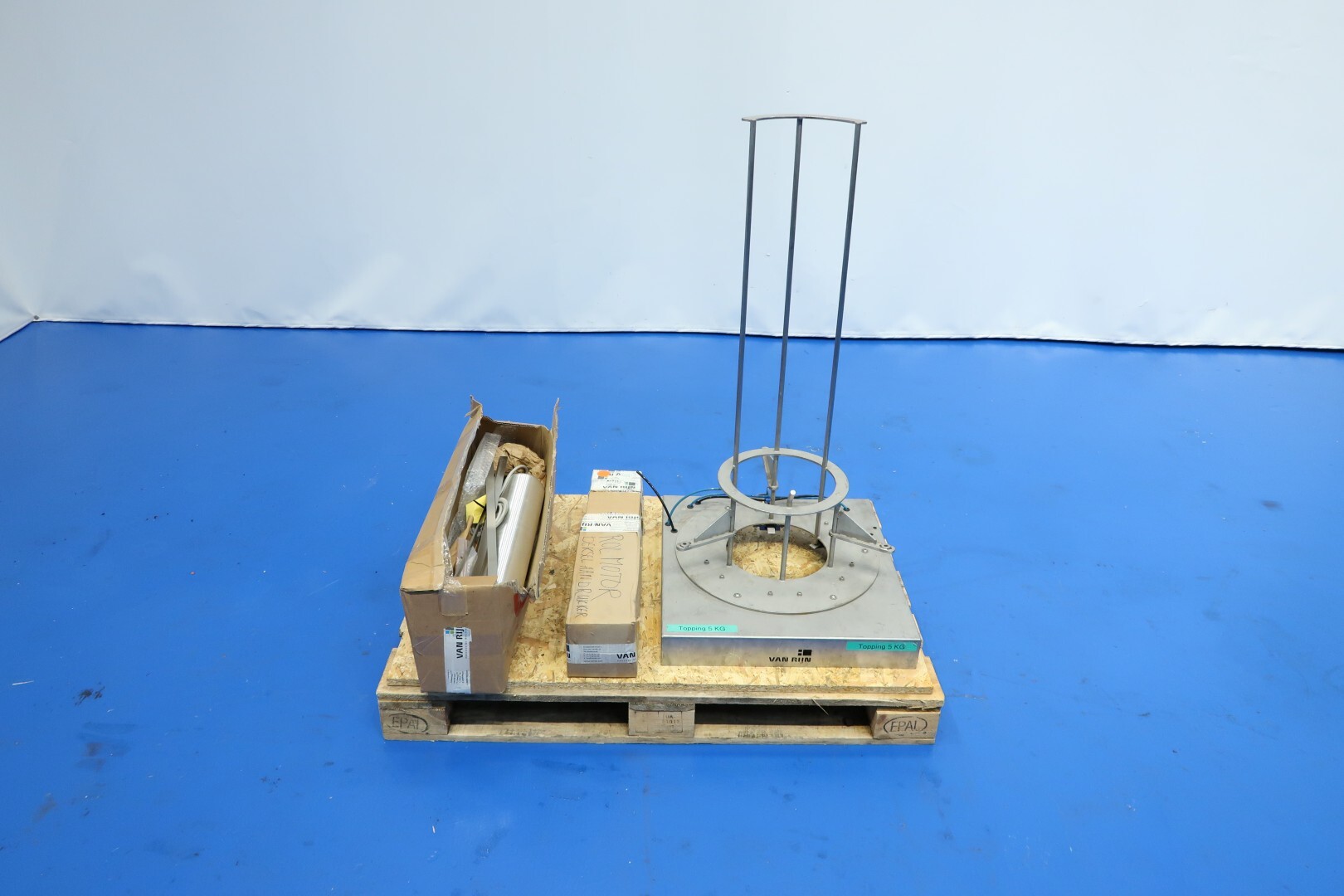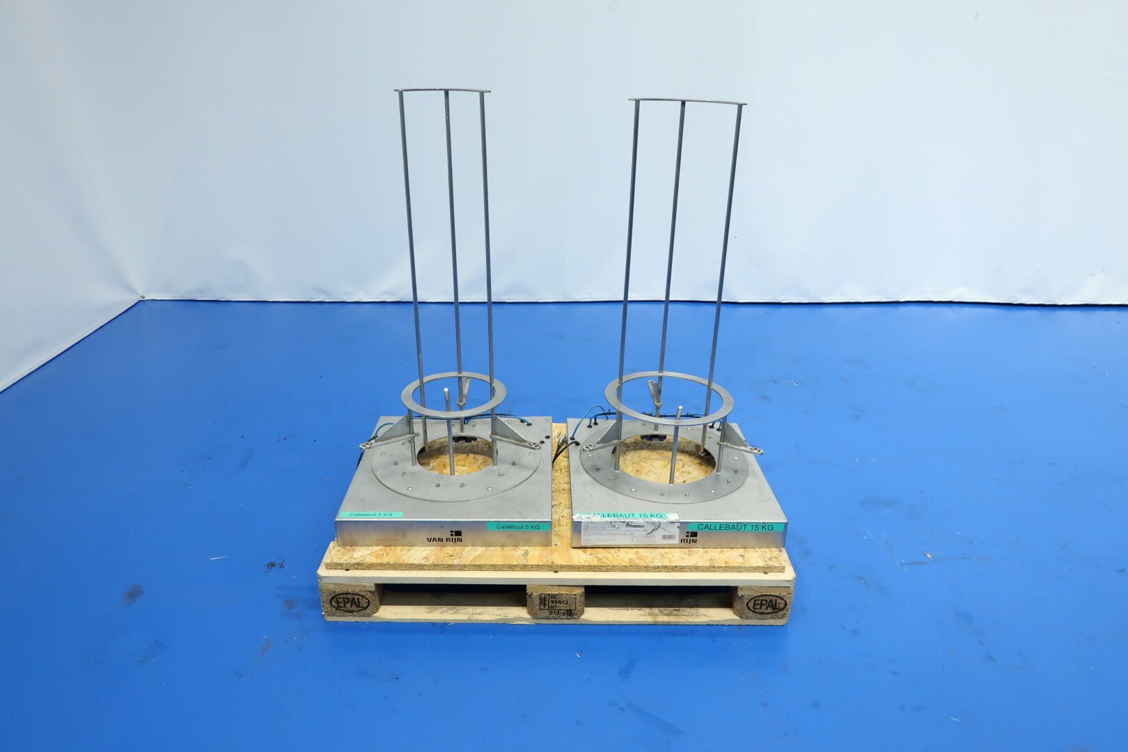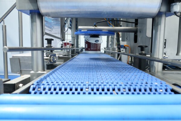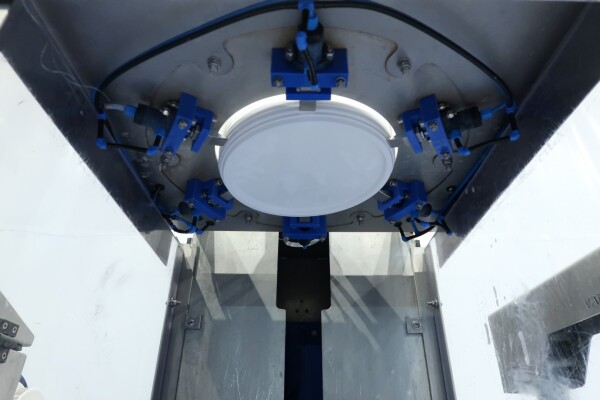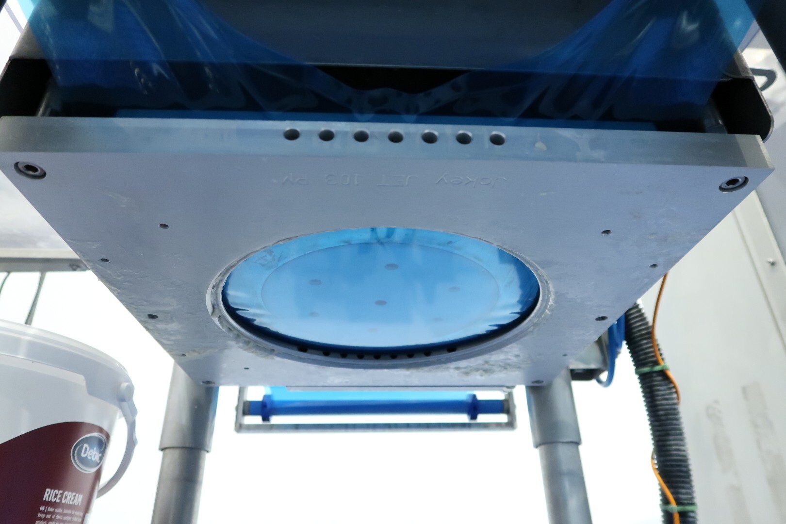 De machine voor het sluiten van emmers en deksels verwerkt formaten van 5 kg, 10 kg en 15 kg. De emmer van 10 kg heeft een binnendiameter van 25 cm. De machine is uitgerust met een extra sealplaat en sealdetectie, evenals een invoer- en een mobiele uitvoerband. (420 cm lang en 40 cm breed). De emmers worden onder een hoek van 90° op de centrale transportband aangevoerd, naar de sealer getransporteerd, waar de bovenkant wordt geseald met behulp van een stopcilinder voor de emmertoevoer, en vervolgens naar het dekselplaatsstation worden verplaatst. Het deksel wordt gepositioneerd door een duwer voordat de emmers worden overgebracht naar de uitvoerbufferband. De foliesealer, dekselplaatser en duwstations zijn allemaal uitgerust met positioneringssledes. De machine wordt aangestuurd door een Siemens Simatic S7-300 PLC met een op de machine gemonteerd HMI-scherm. Documentatie is beschikbaar in het Nederlands. |