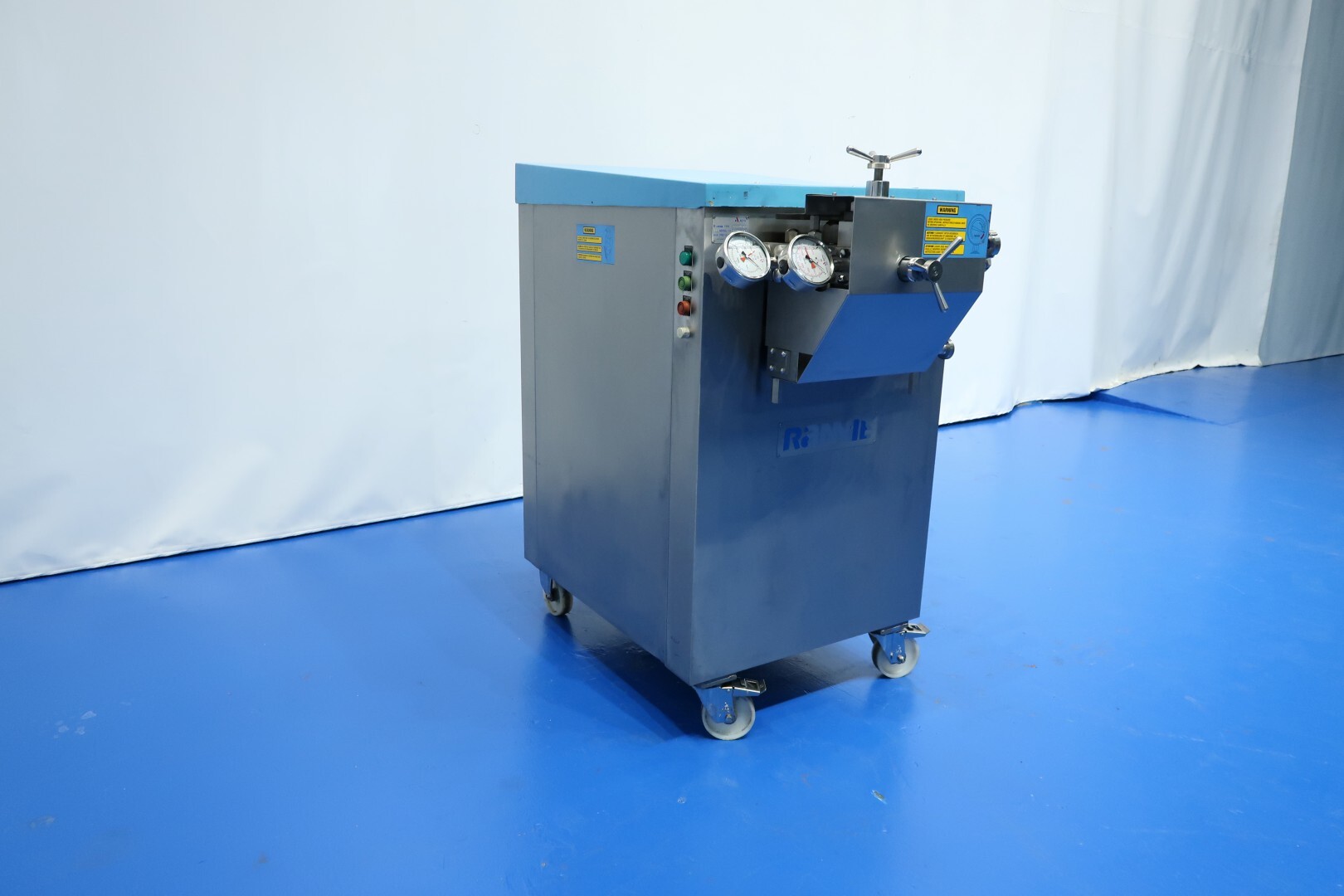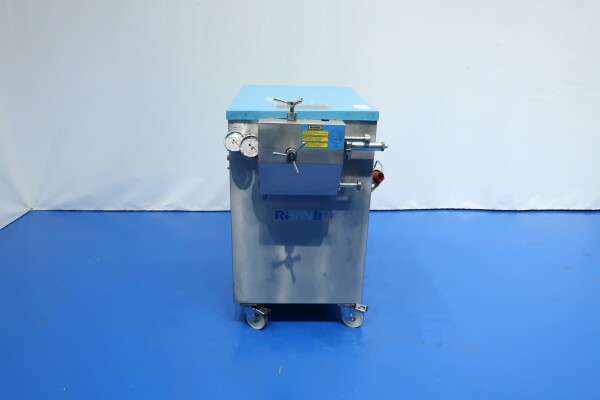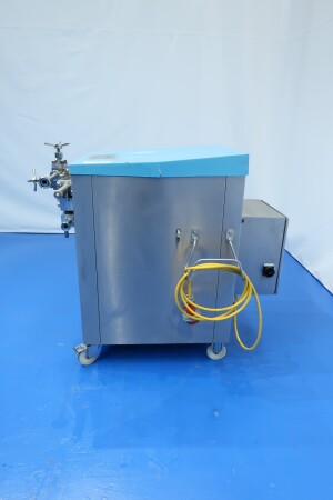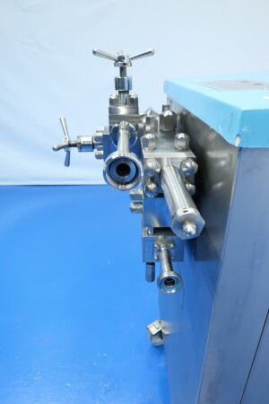 Мобильный лабораторный гомогенизатор с ручным регулированием давления на первой и второй ступенях, включая манометры. Диаметр поршня — 12 мм, ход — 51 мм. Максимальное давление: 1000 бар. Оснащен предохранительным клапаном. Панель управления расположена на задней стороне аппарата и оснащена частотным преобразователем для регулирования скорости.